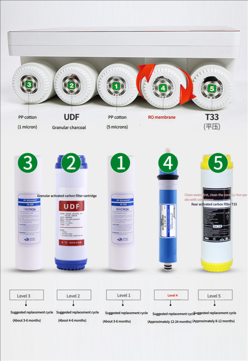 2. 5-core 5-stage RO reverse osmosis filtration.