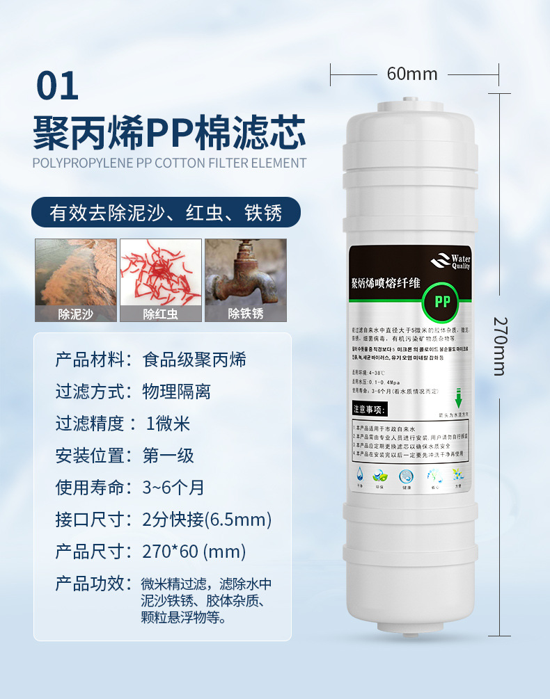 5um Quick-Connect Filter Element PP Cotton Household Water Purifier Universal Filter Element Integrated Water Purifier