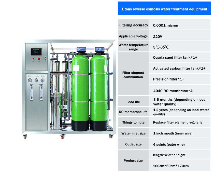 Industrial 1 TonWater Purification Large Water Treatment Equipment Stainless Steel Reverse Osmosis RO Pure Water RO Industrial Water Purifier