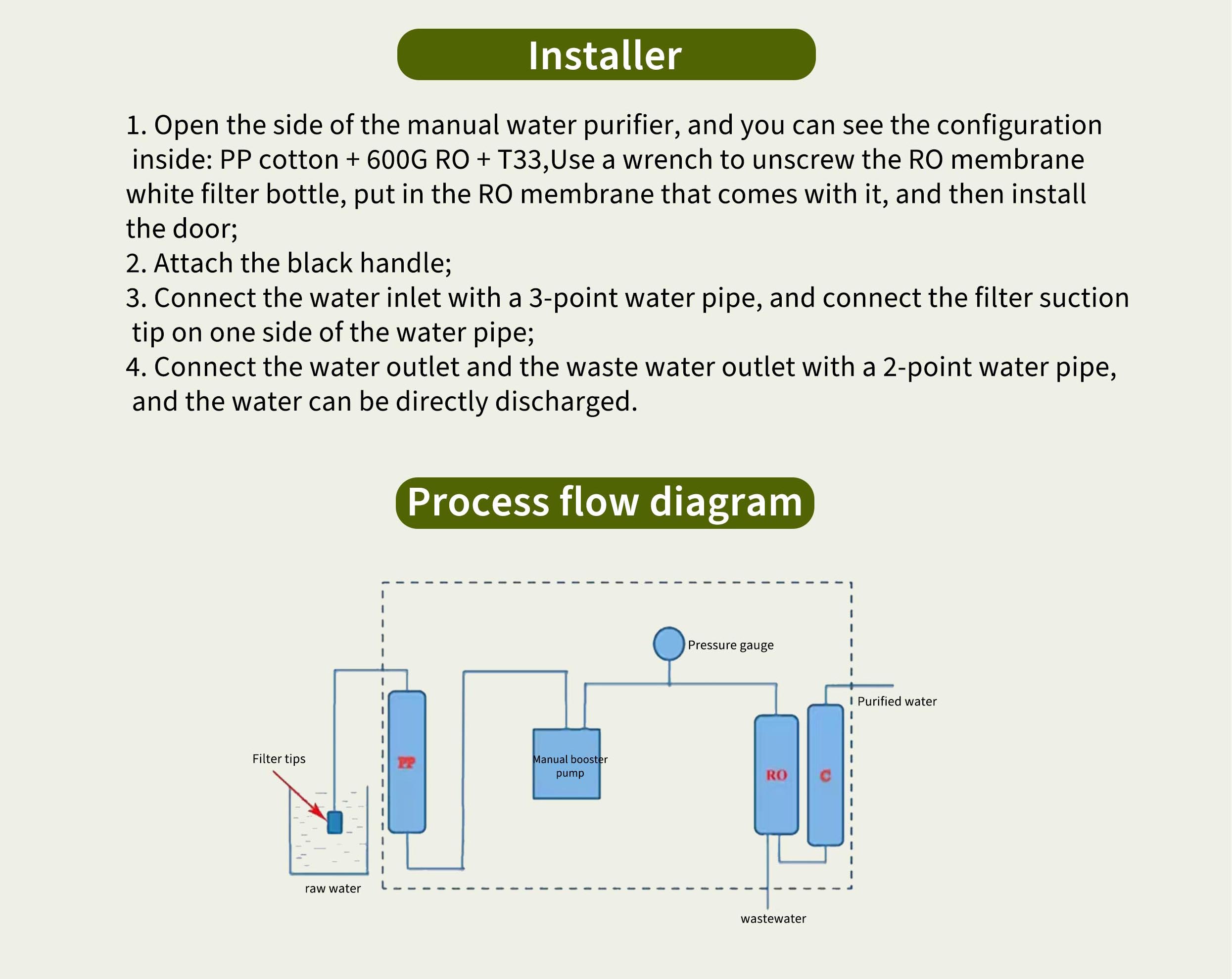 Multipurpose 600G Drinking Water Filter Manual Mini Household RO Water Purifier